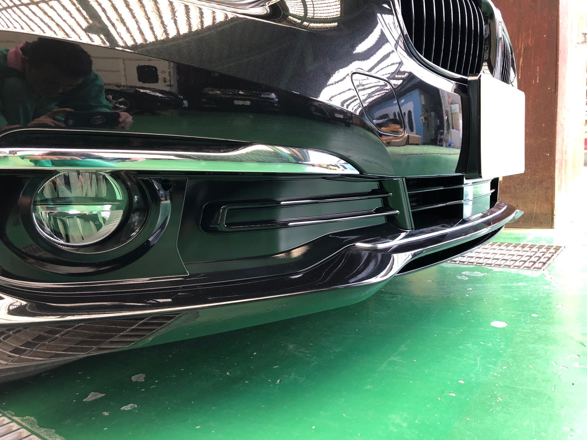 キドニーグリルはボディー色、バンパーグリルは素地の黒を生かすためにクリア塗装のみとお客様にご提案をしてみたところ”それでいいです!”といってくださいました。