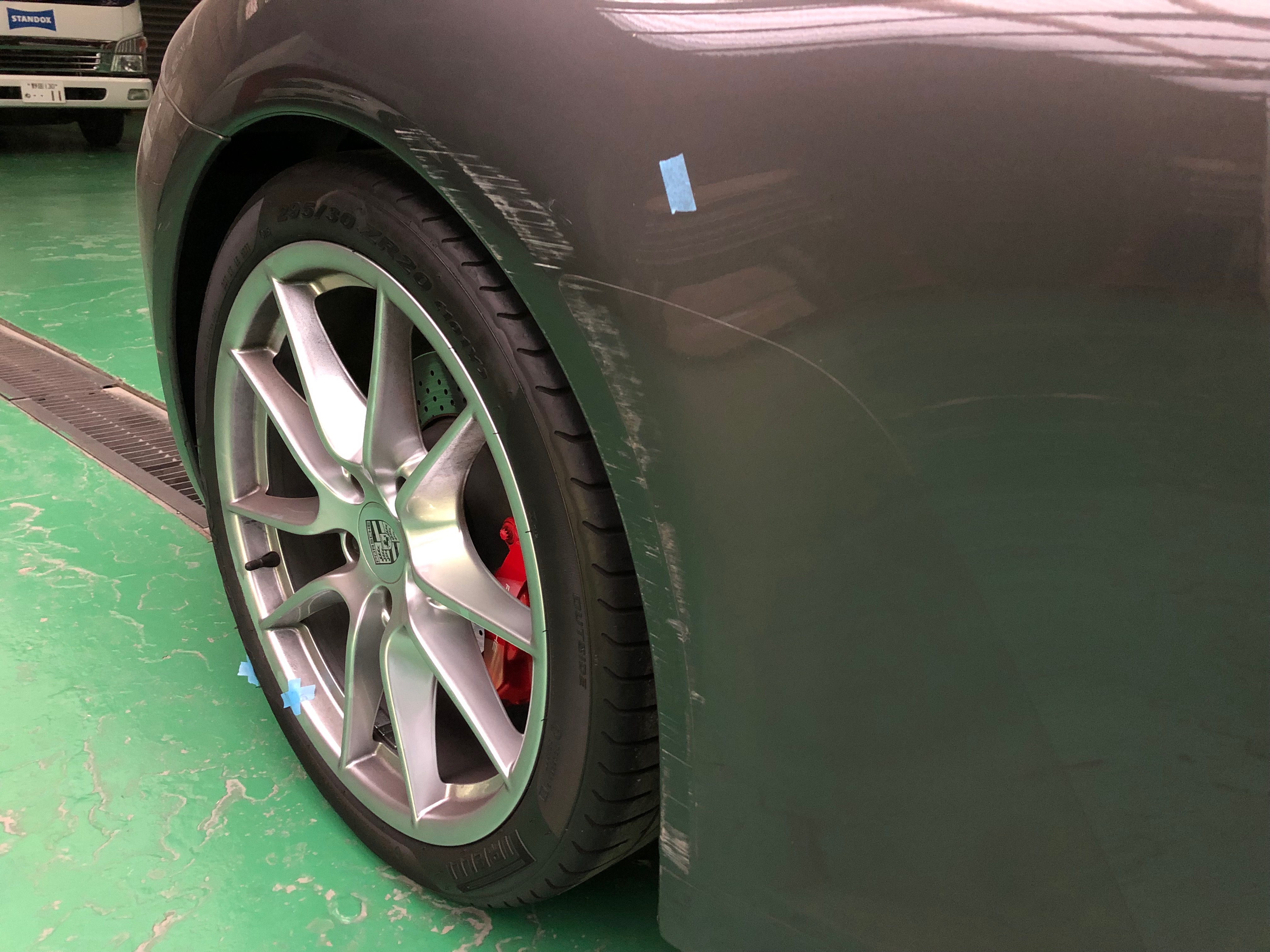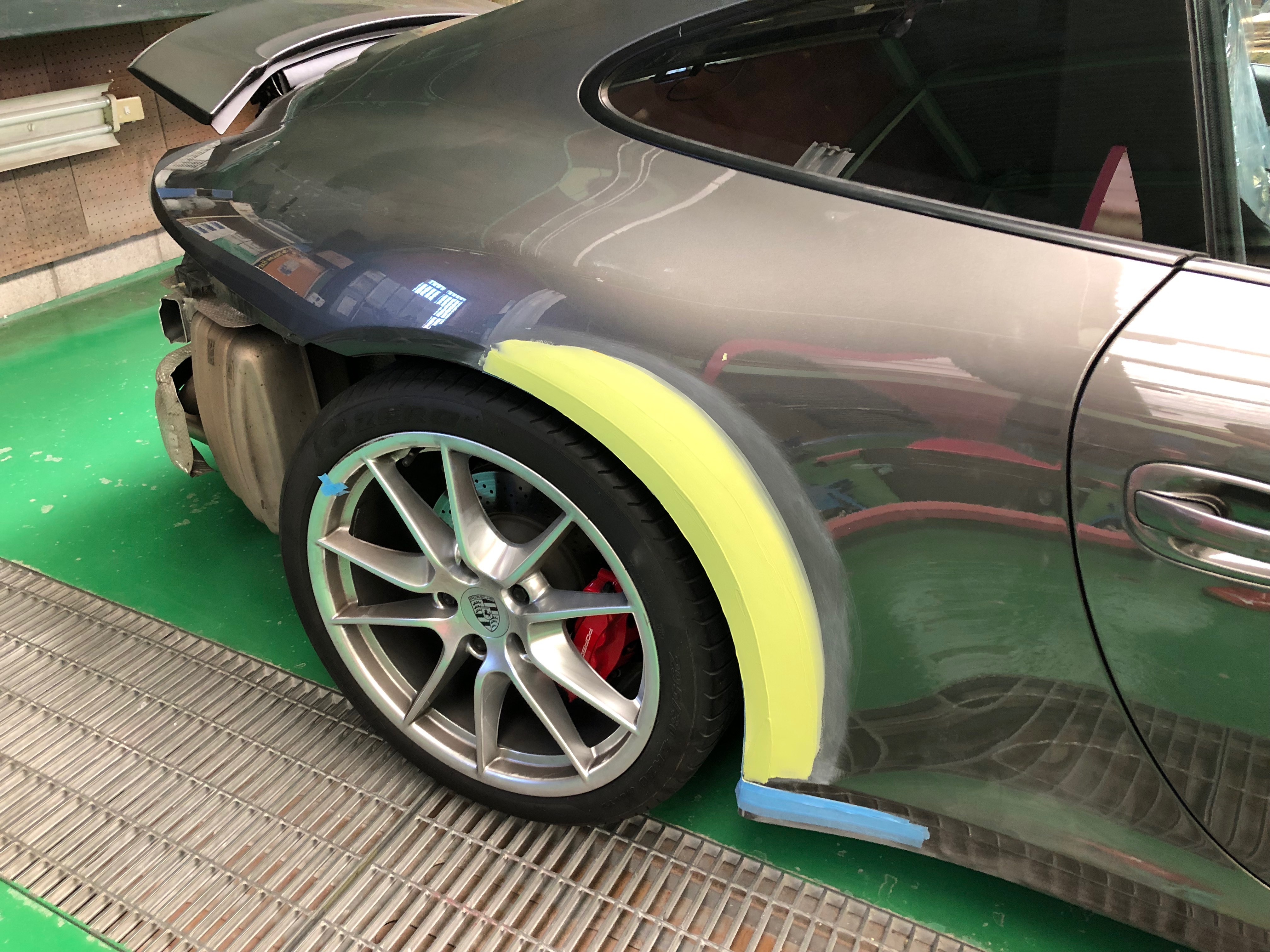 ポルシェは後ろに向かってテーパーになっているので、Rフェンダーは地味に損傷が大きかったです。