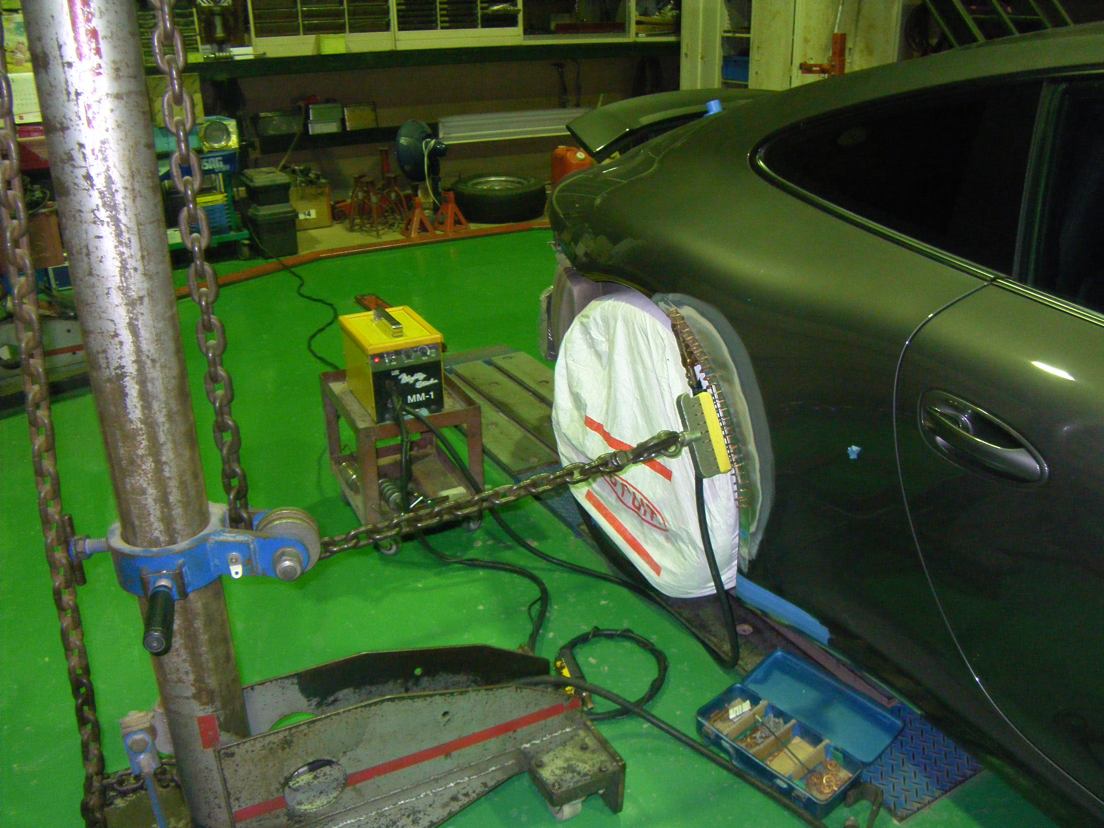 凹んだ部分を専用の機械で引っ張り出します。ある程度でたら次の工程に移ります。