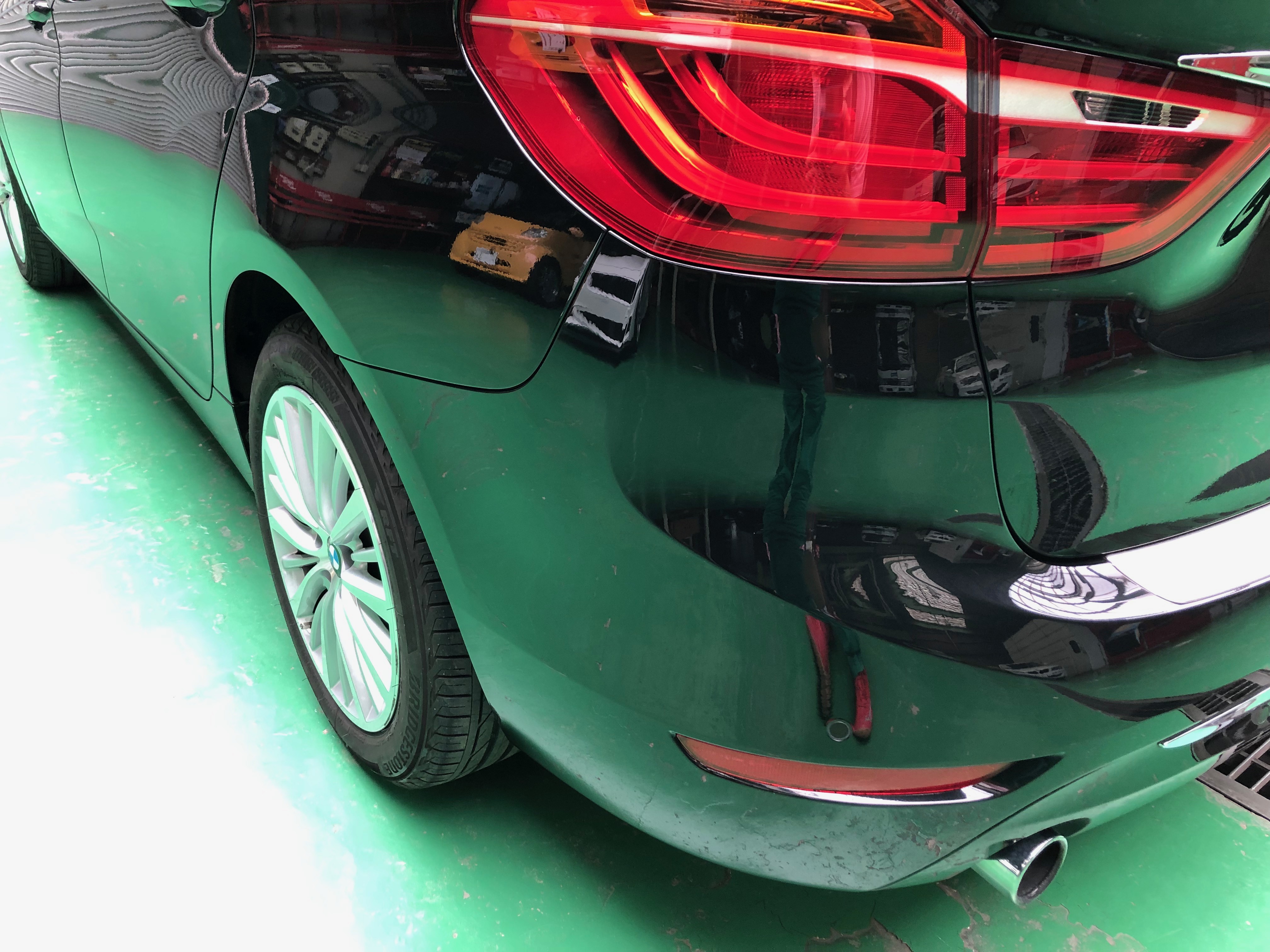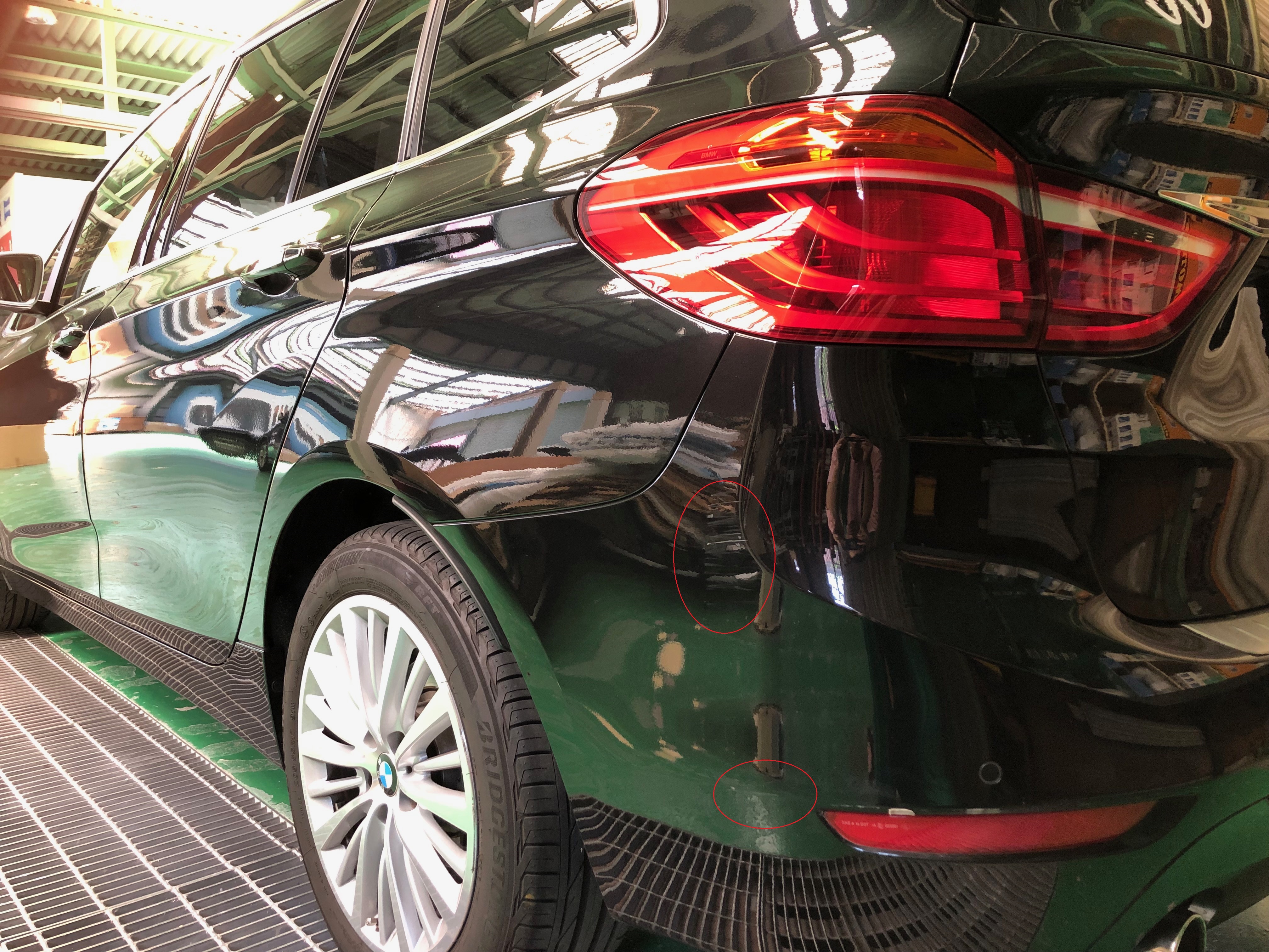 駐車場に止めていたらRバンパーに傷をつけられていた BMW グランツアラー 千葉県柏市