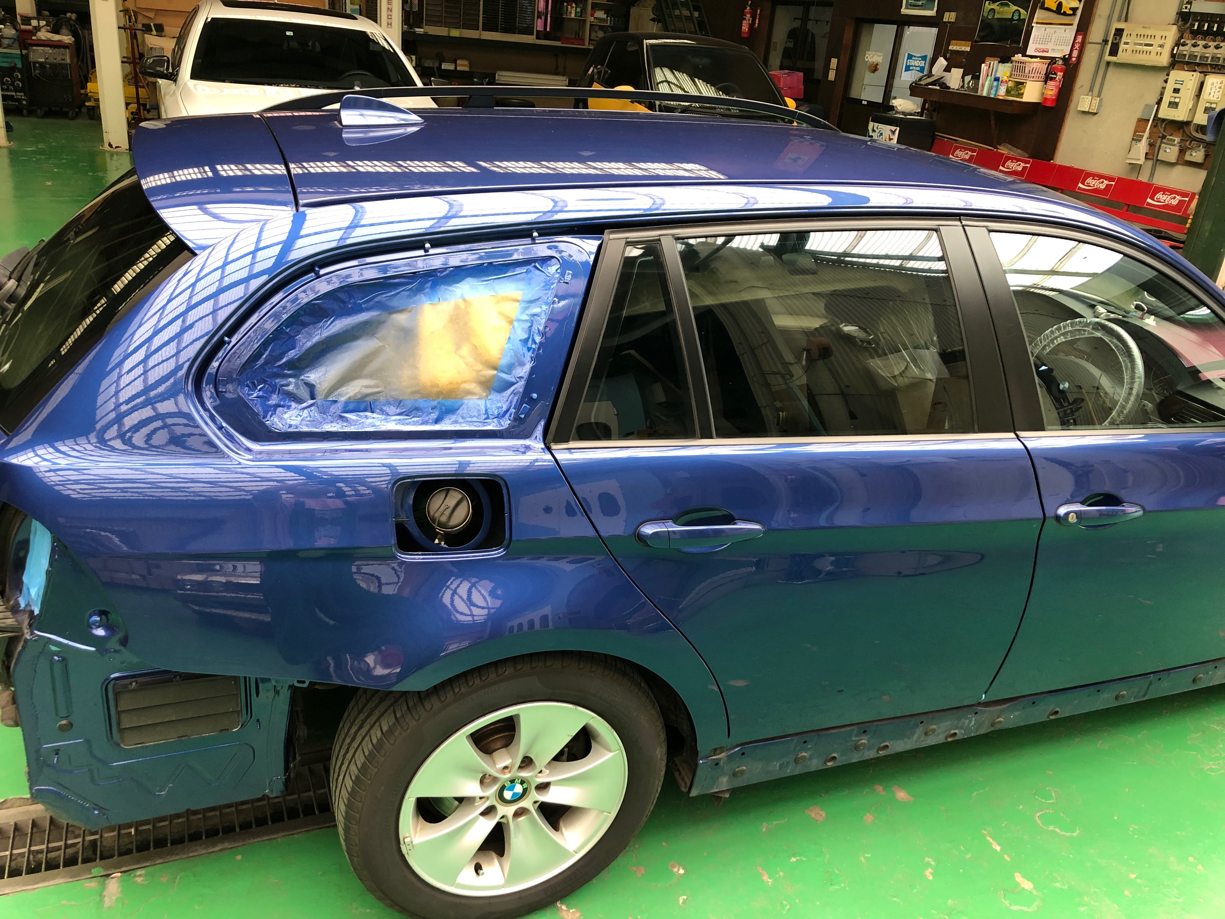対向車との接触事故でRバンパーRフェンダー修理 BMW E91 茨城県守谷市