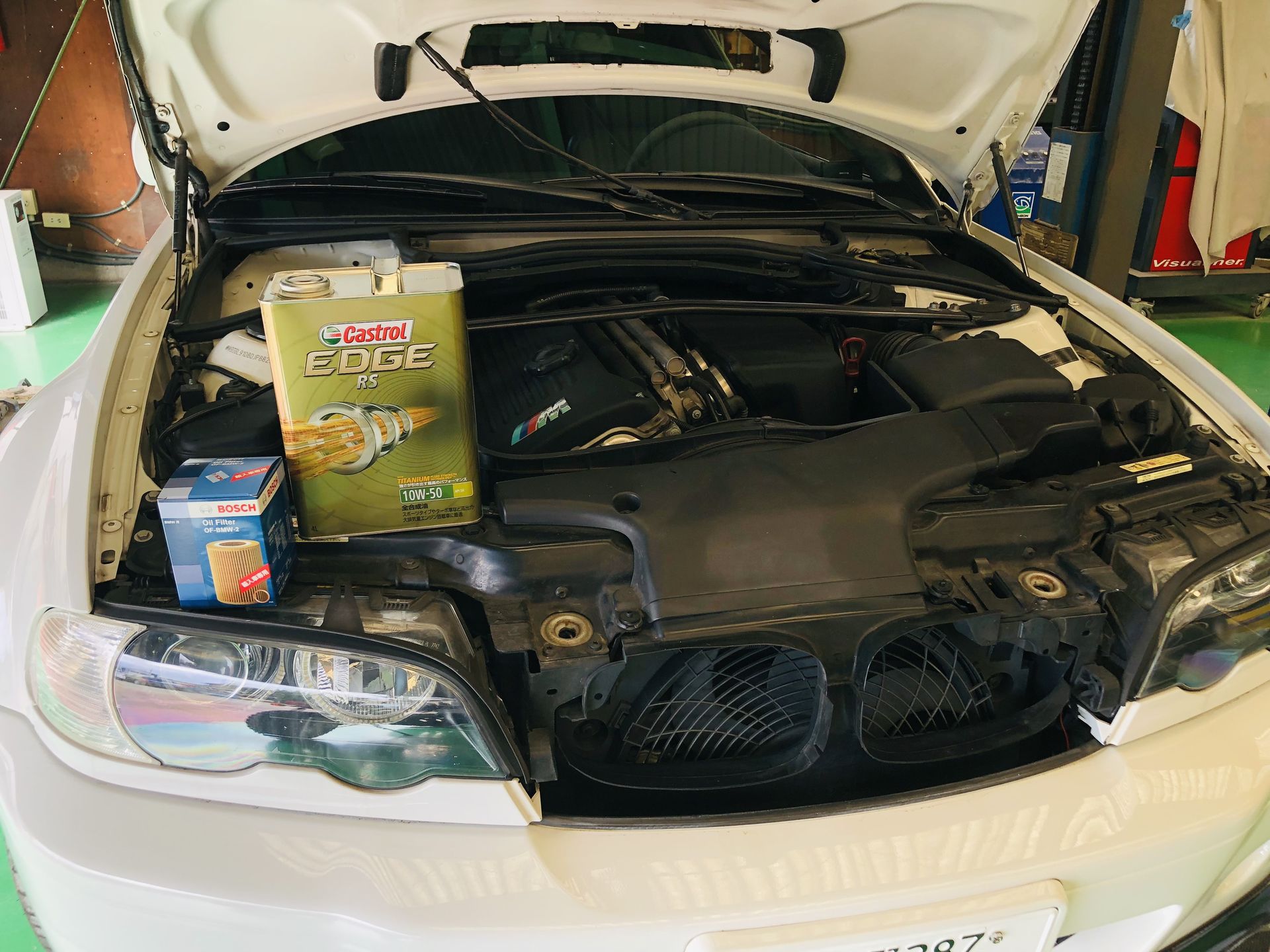 オイルは純正のものを使います。純正はカストロールの10w-60を使っていますが、サーキット等を走る訳でもないのでお客様と悩んで10w-50を使用することにしました。