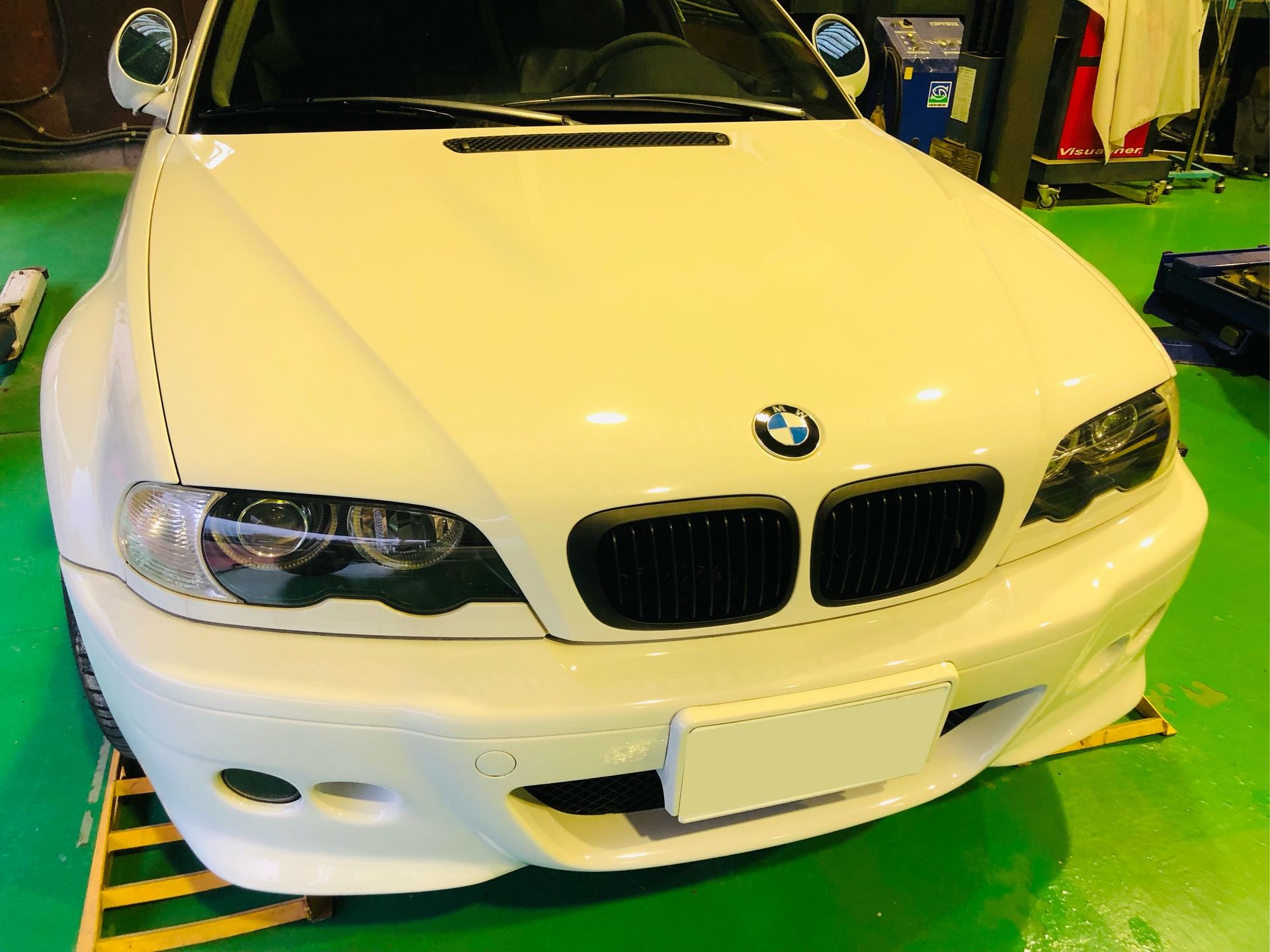 ついでですが、お客様のご要望で、メッキだったキドニーグリルとエンジンフードのグリルをマットブラックに塗装をいたしました。
